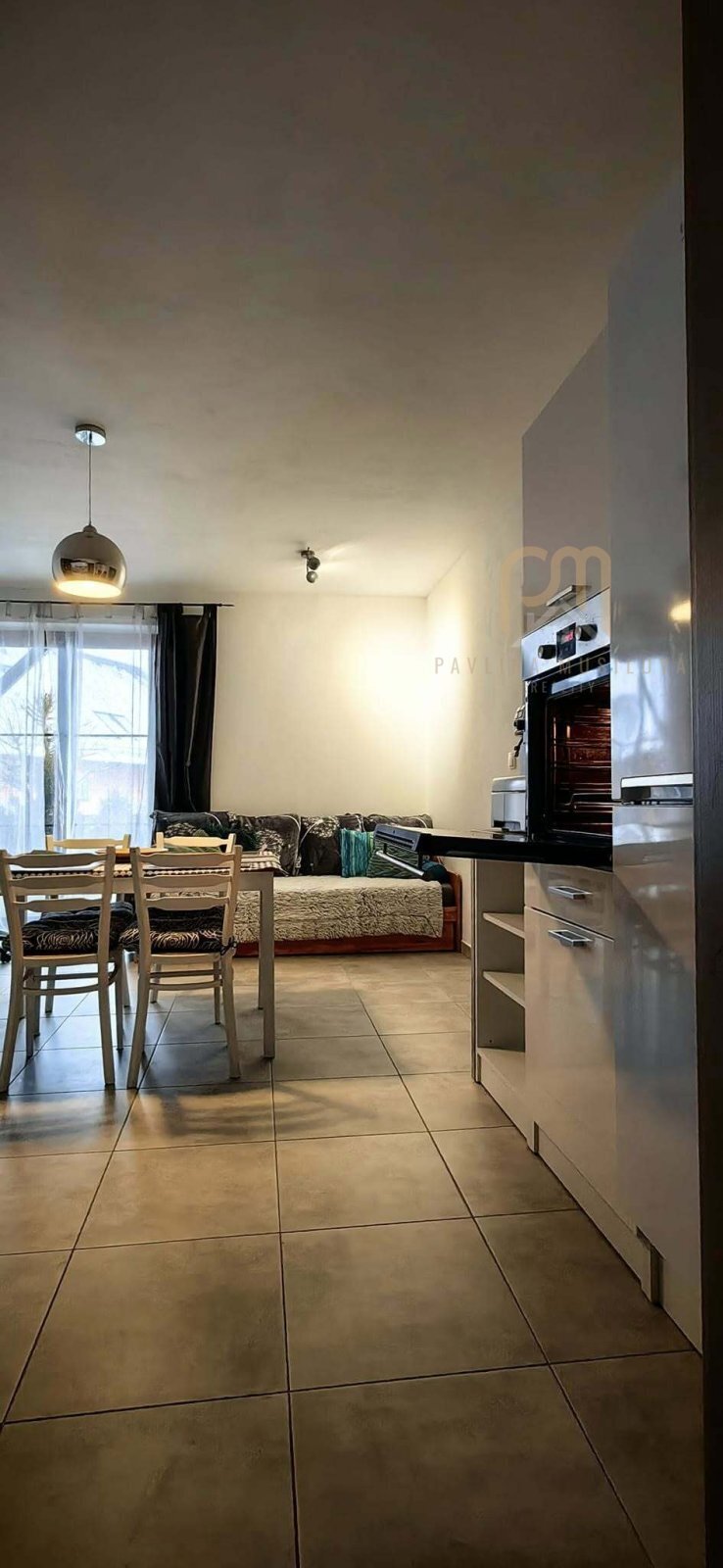 Předsíň, koupelna, kuchyně a propojený obývací prostor s krbovými kamny, jídelním koutem a vstupem na terasu . Jíst můžete i na terase a pohodlně tam z kuchyně vše servírovat.